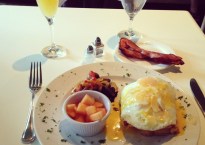 In Palm Springs for a weekend holiday…. Sunday Brunching at Jakes Amazing Croque Bendict… Egg bread, melted ham and cheese topped with two eggs and hollandase…