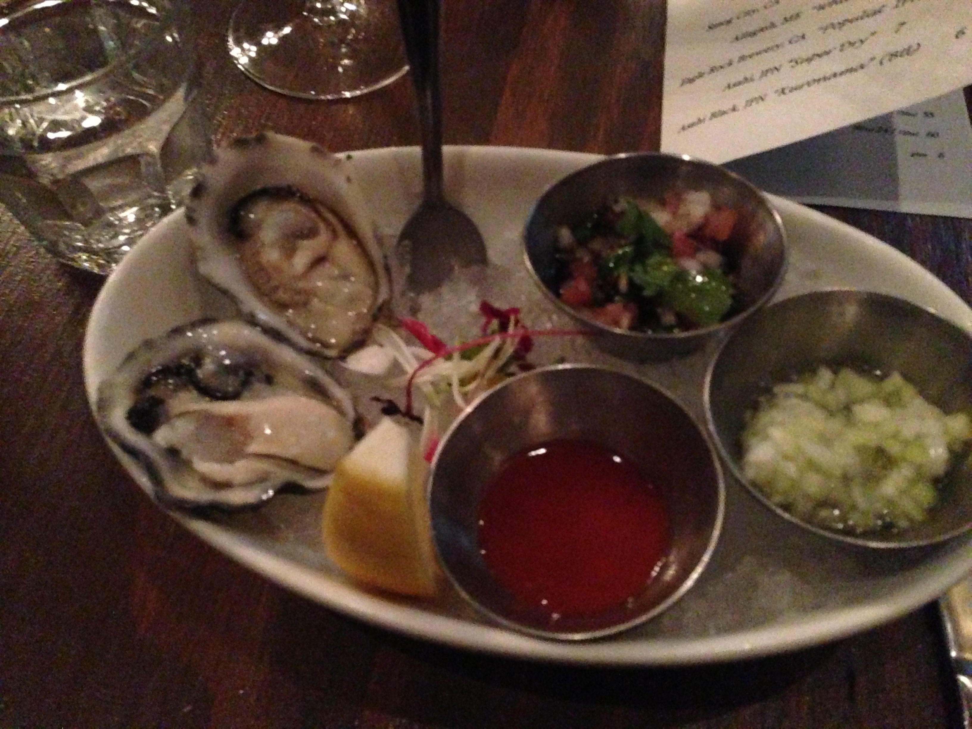 Oysters are my absolute favorite! I ordered four that were imported from British Columbia and oh so tasty with a spicy hot sauce and tangy ponzu.