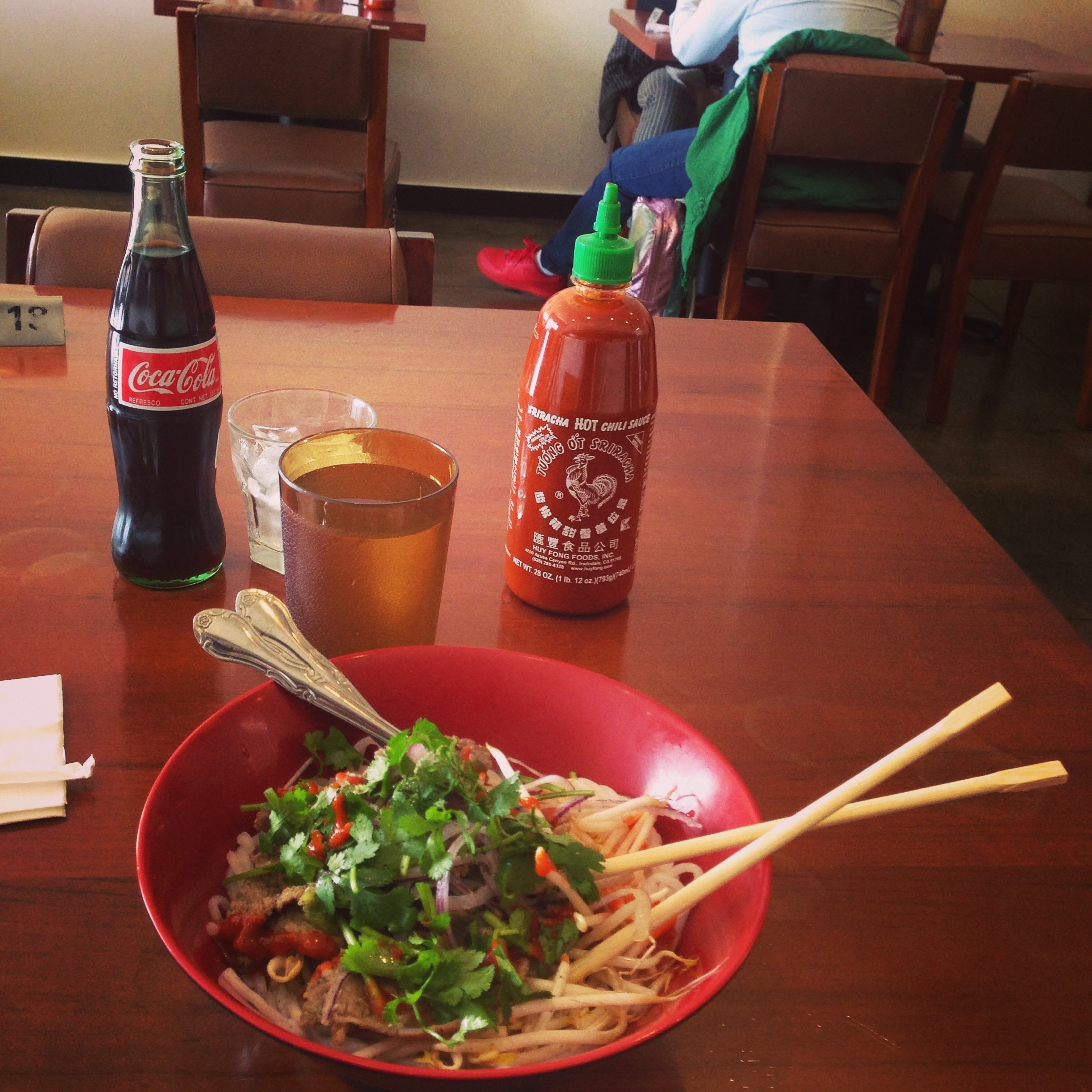 The Pho’s at VietNoodle are great and I especially like the fish Pho. But, today I was looking for something tangy and I chose the lemongrass beef which is my favorite dish overall! Homemade noodle, tangy lemongrass peppered beef, in a light broth. Absolute yum! And of course don’t forget the Siracha!