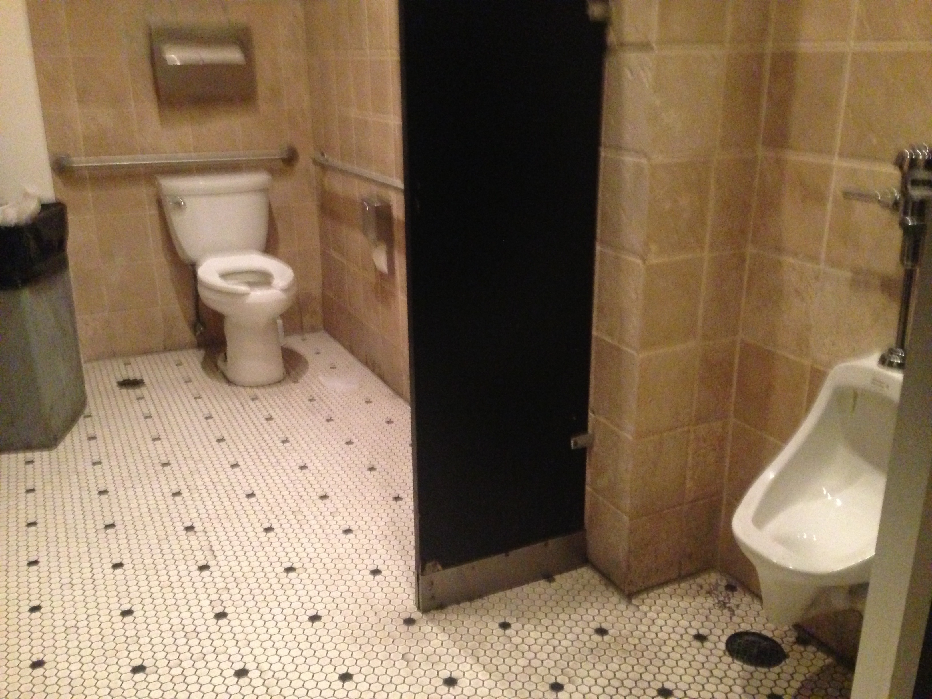 I was attending a mixer at the Pig And Whistle in Hollywood when nature was calling me! Quickly, I guzzled my jack and coke and set off on a journey to find the restrooms. Not only did I pass by the Co-Ed bathroom sign once, twice, and after the third time of not finding a female only boudair, I decided to go in!