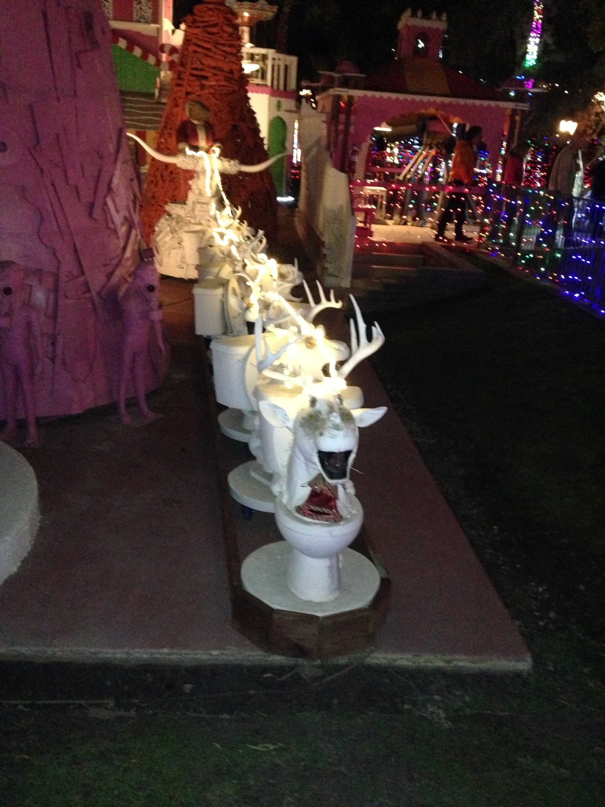 An interesting psychedelic Christmas light art exhibit using toilets and doll heads as one of its main elements. Nestled in the exclusive neighborhood of the Movie colony in Palm Springs, Robolights was an excellent ending to my holidays this year.