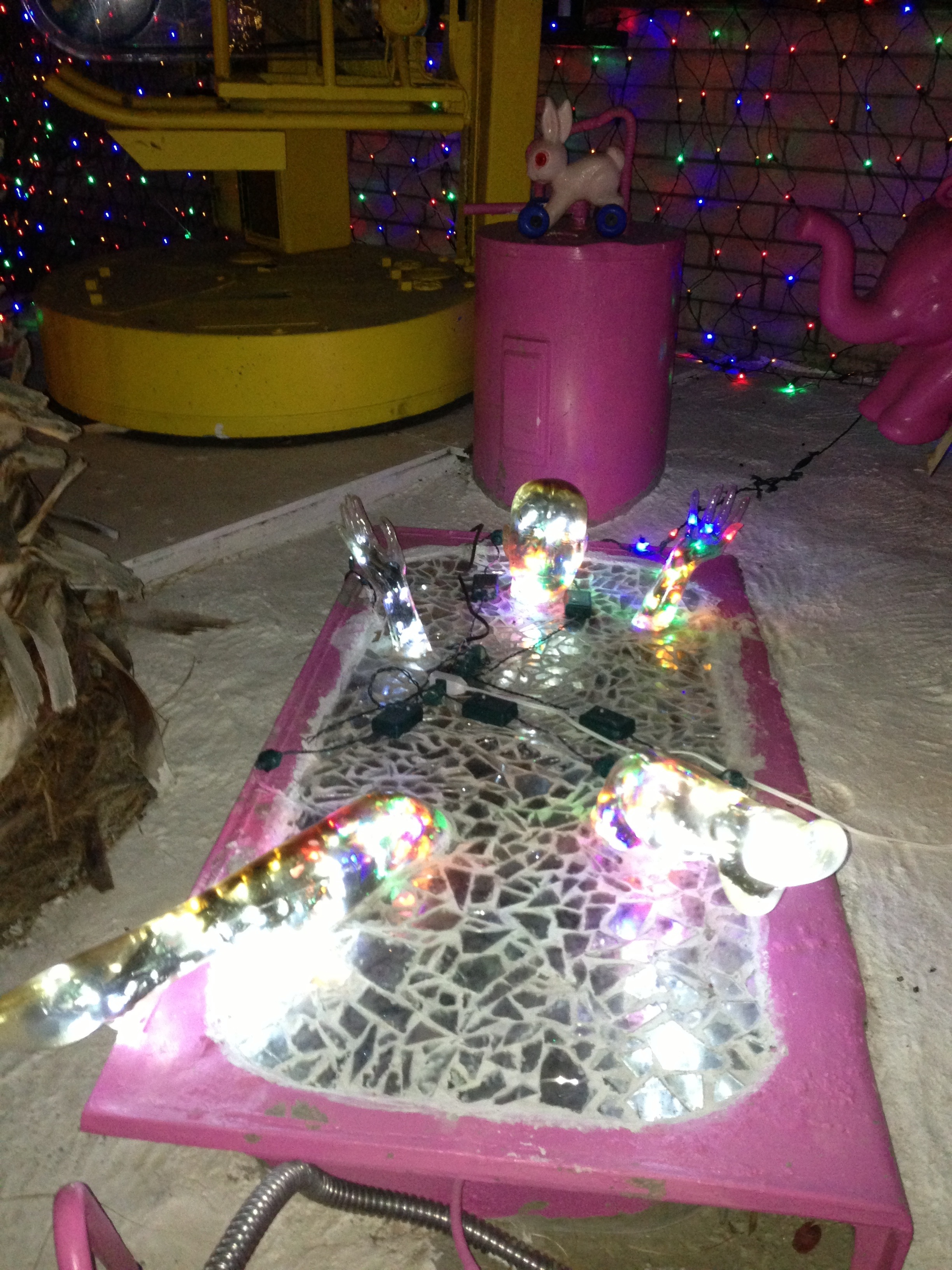 Walking through this robot/ doll head whimisical wonderland full of lights must be what an acid trip looks or an ayahuasca trip minus the vomit looks like, it’s what I’ve heard my friends talk about.