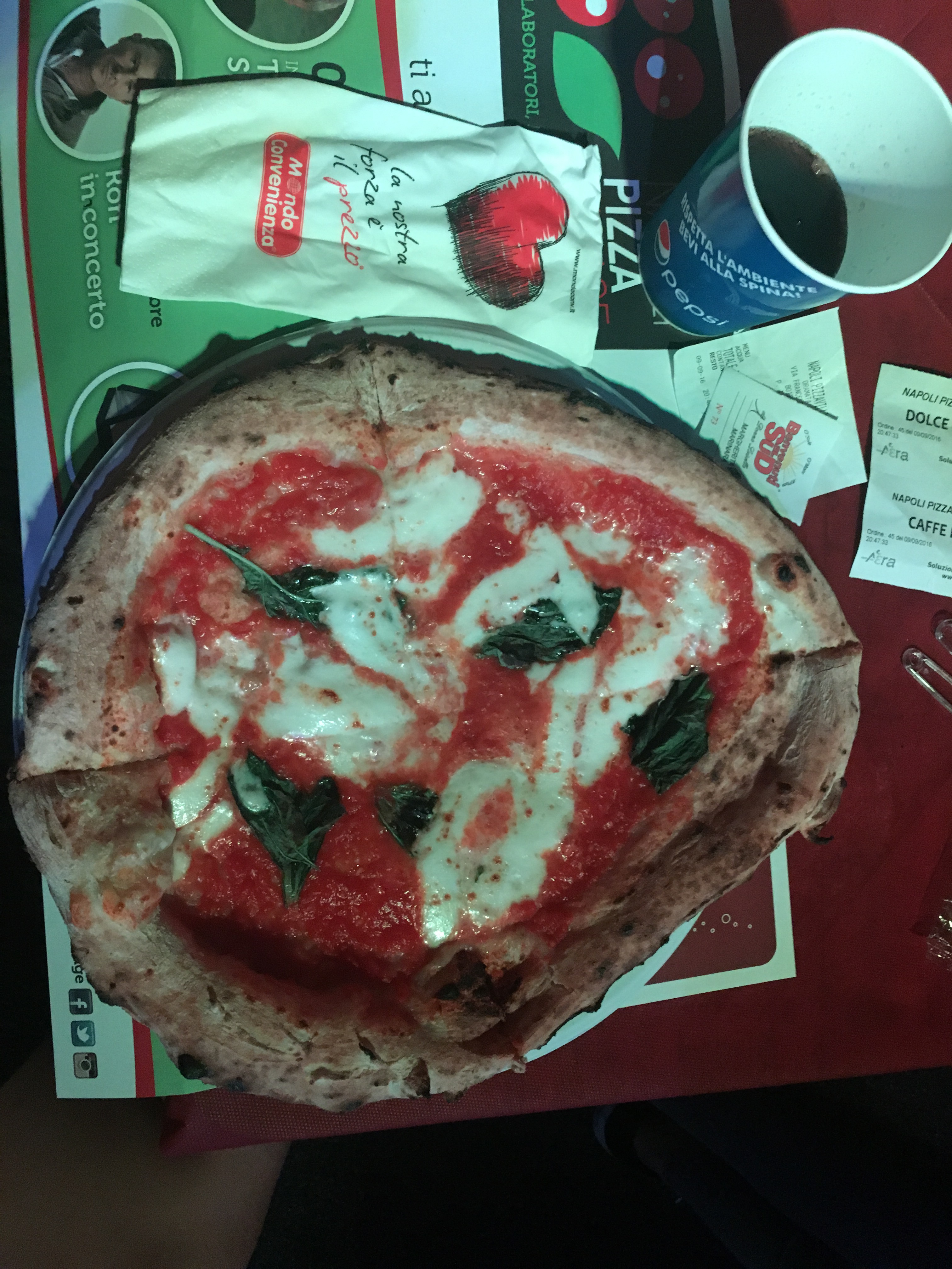The pizza was “ok”… Actually a bit sour and undercooked. But for 12 Euros, which included a drink, dessert, and of course espresso, I’ll give it a pass!