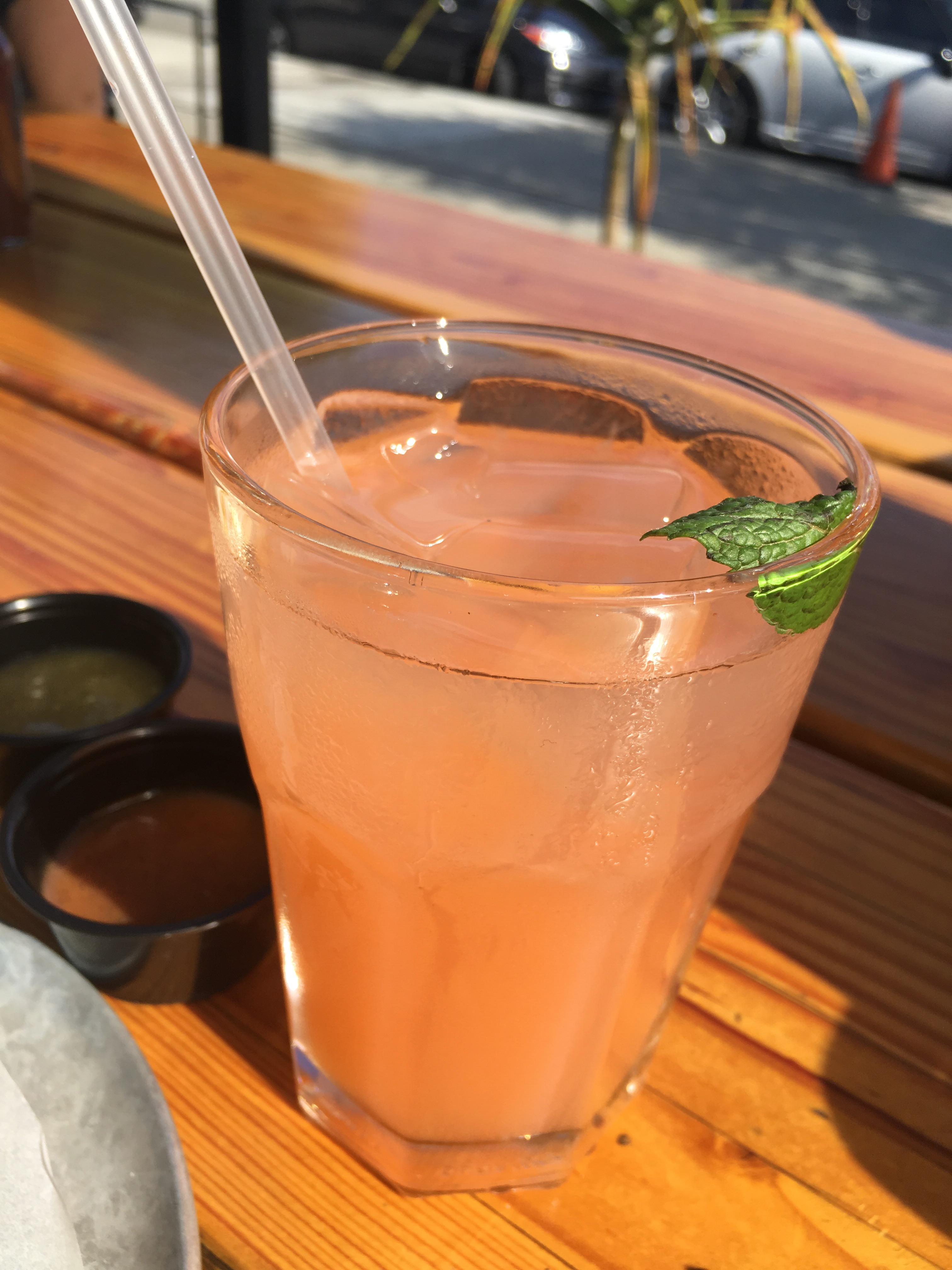 As I waited for my meal, I sipped on my strawberry lemon Agua Fresca which was sweet enough with a tang. And of course I listened to my communal table neighbors convo about some outrageous wedding in New York that started on a farm and ended in a disco!