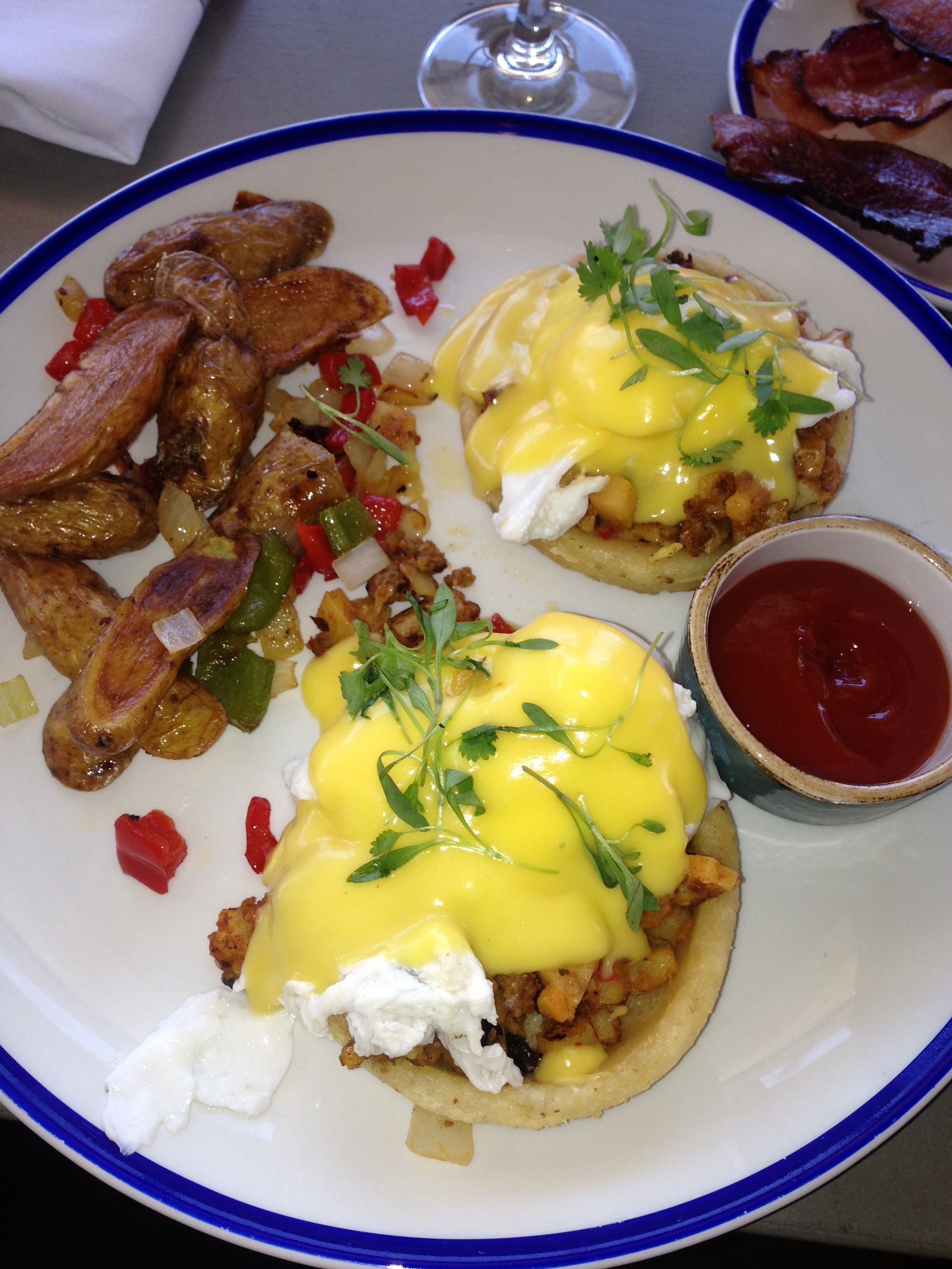 It’s Sunday = Brunch! And the AArive bar has an interesting twist on eggs Benedict…. Sope style. The eggs sit on a bed of chorizo hash in a cozy sope. Sopes are made from fried masa and are usually packed with beans… Though no frijoles exist in this sope!
