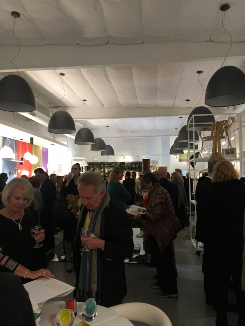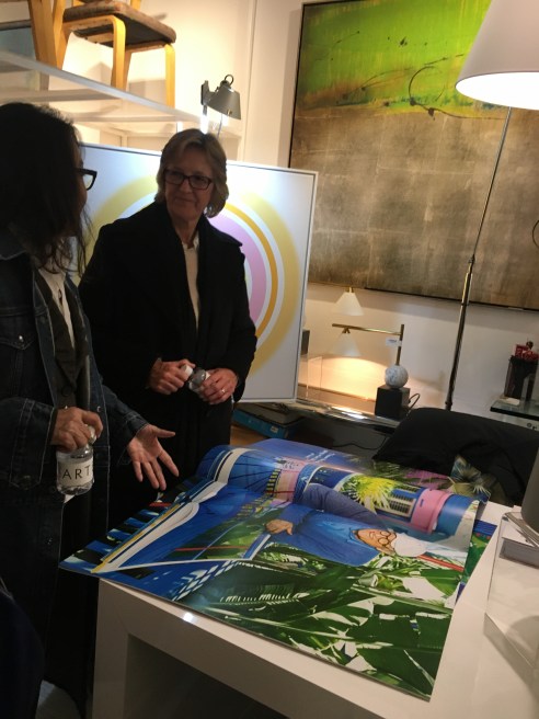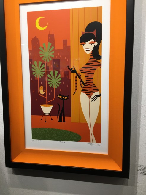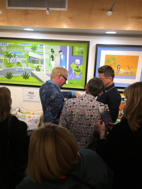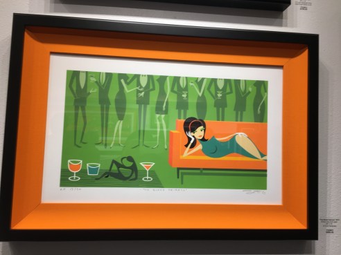 Who can resist Shag? He’s way too cool! And so are his colorful whimsical Modernisim prints. My first stop for the evening where I met a charming woman from Montana while waiting in line for a cocktail and going Gaga for this amazing art! The band with xylophone was impressive and swanky.