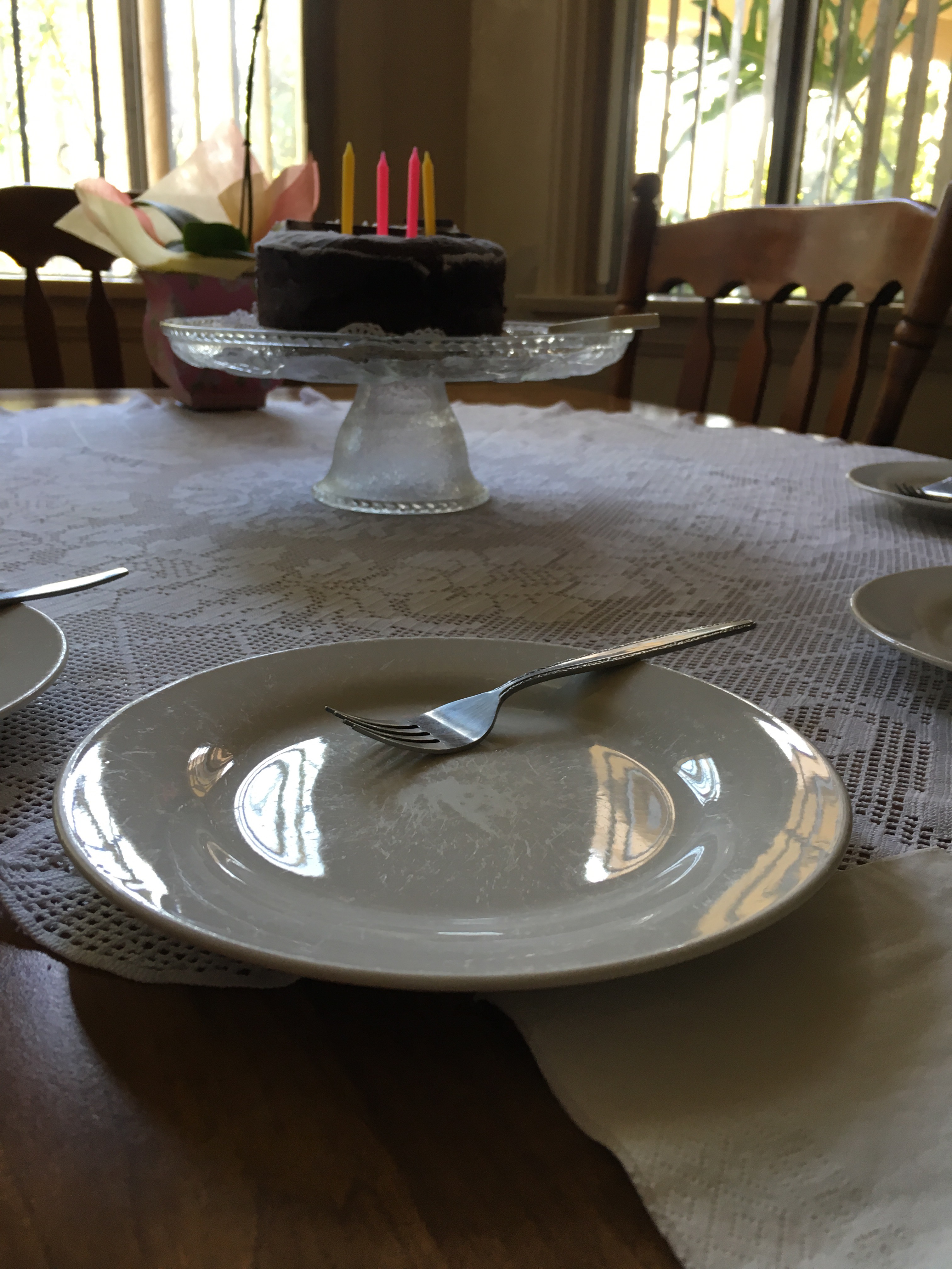 Cake time and shenanigans with my family. Flourless chocolate cake from Whole Foods.