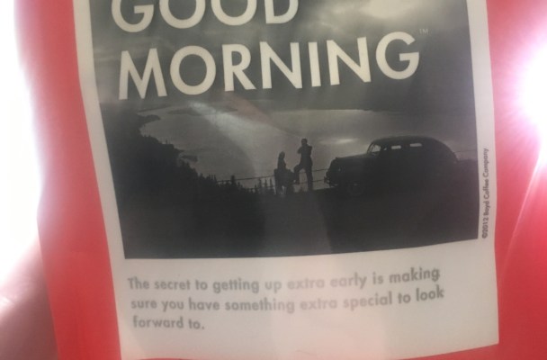 As I was making a cup of Boyd’s Morning coffee this morning for some odd reason this caught my eye. I never read the packaging on coffee. I just make it. I either grind the beans take a whiff or open the ground coffee bag and just dump it inside my coffee maker half asleep.