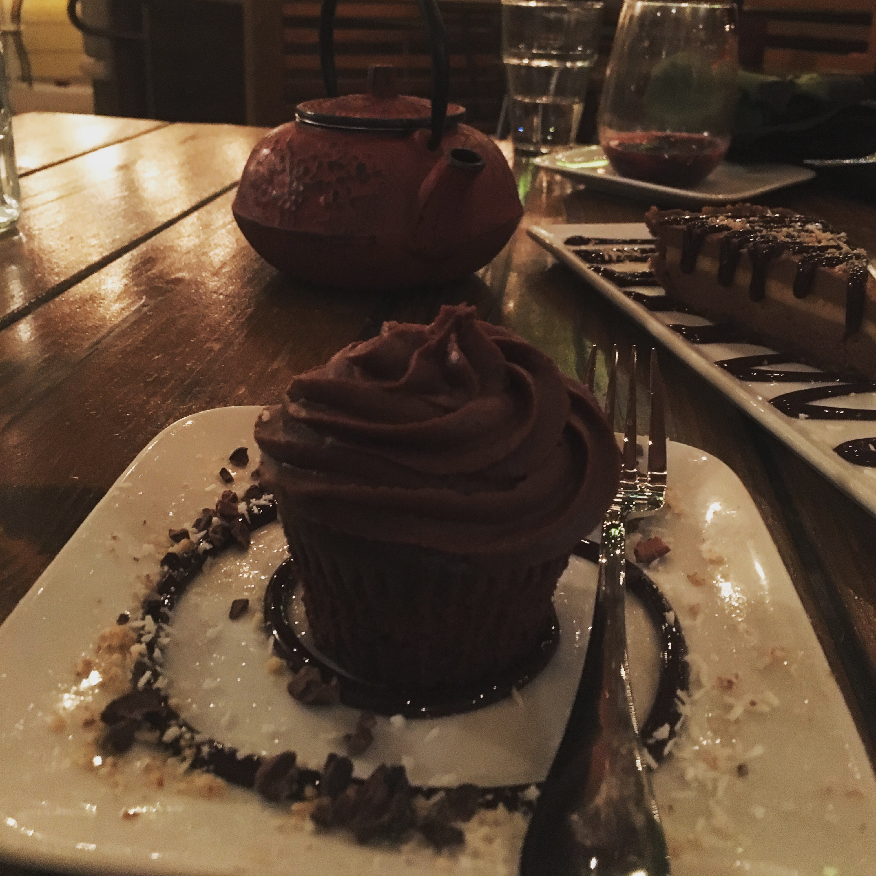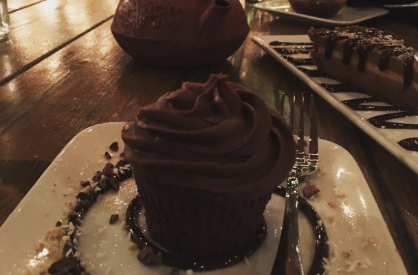 A gal pal and I feasted on the jicama nachos, gluten free veggie pizza, and double chocolate vegan gluten free cupcakes. Add a side of hot chamomile tea and it was a perfect pre summer evening meal!