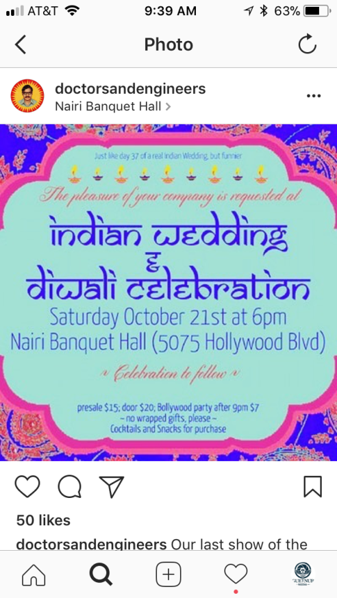 More than just a Wedding, but a variety show which includes comedians, storytellers , dancers and music! This was an extra special event since “Diwali,” the largest festival in India of the year, celebrating the new year, light and prosperity was also a part of the festivities!