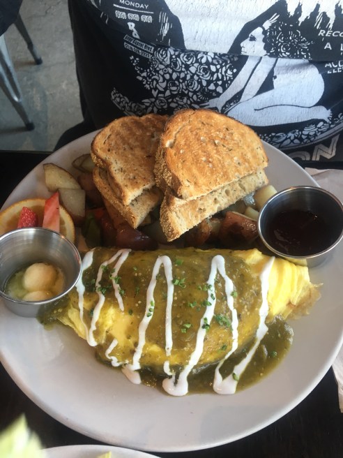 My Bro had the Bernie’s Chiki verde with pork and Brie omelet…
