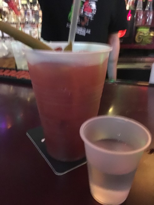 And some nice young gentlemen bought me a shot of tequila to go along with it! I loved the pickled green bean topping my “Mary!” It had a great oumf!
