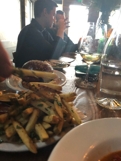 Heaven would want to know about the lamb burger that my friend had, the garlic fries that we shared, and the handsome men that adorned the restaurant like ornaments on a Christmas tree.