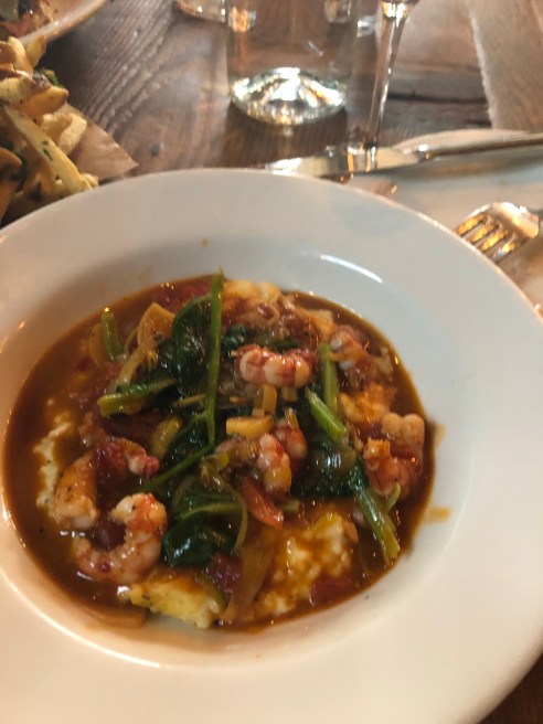 And let’s not forget about my shrimp and grits swimming in a red sauce.