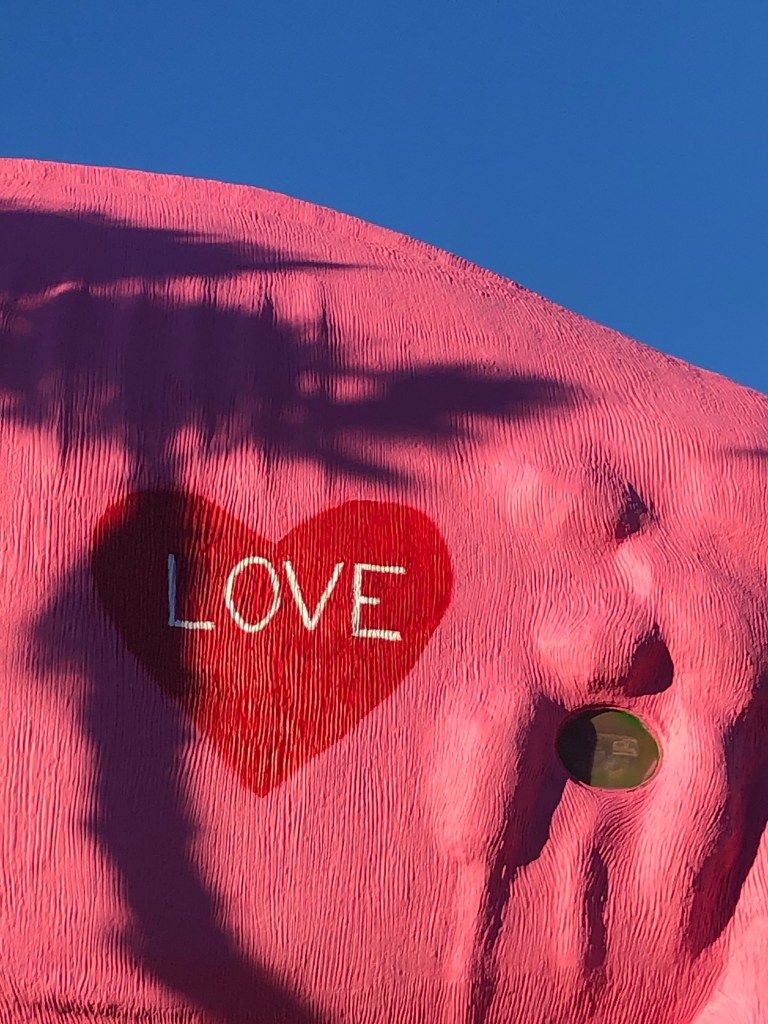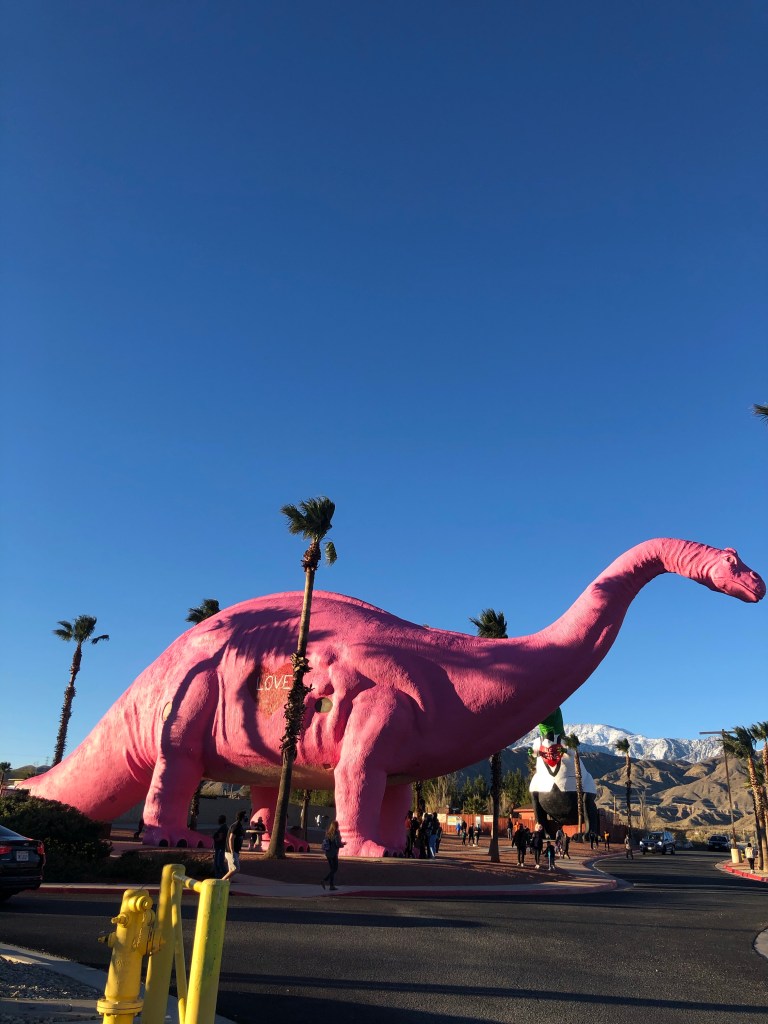 The Cabazon Dinosaurs 🦖 off of the I 10 right before Palm Springs, California are dressed and ready for ❤️! Perfect place for a social distancing road trip with the love of your life, that one person you met on bumble or yourself!