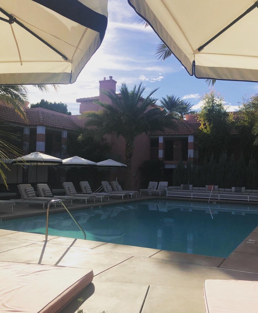 The Colony Palms use to be my “Notoriouslysinglegirl” hang until I was told I had to be a hotel guest and I was no longer welcomed to sit by the pool, drink overpriced cocktails, and real my Forbes Millionaire magazine. Pish posh as they say on Jupiter, there are many other poolside hangs too explore in the desert !