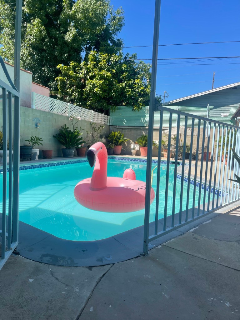 I posted this pic on my Notoriouslysinglegirl IG. My trusty floaty flamingo 🦩 in a 102 Los Angeles sweaty heat wave. “Summer it turns me upside down!” The song “Magic” by The Cars started playing in my head.