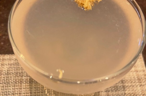 When I saw the bartender pull out a carafe of an opaque liquid from under the bar, I literally winced. As I watched him pour the liquid into a miniature old school champagne glass I’m like “what the hell is he doing?”