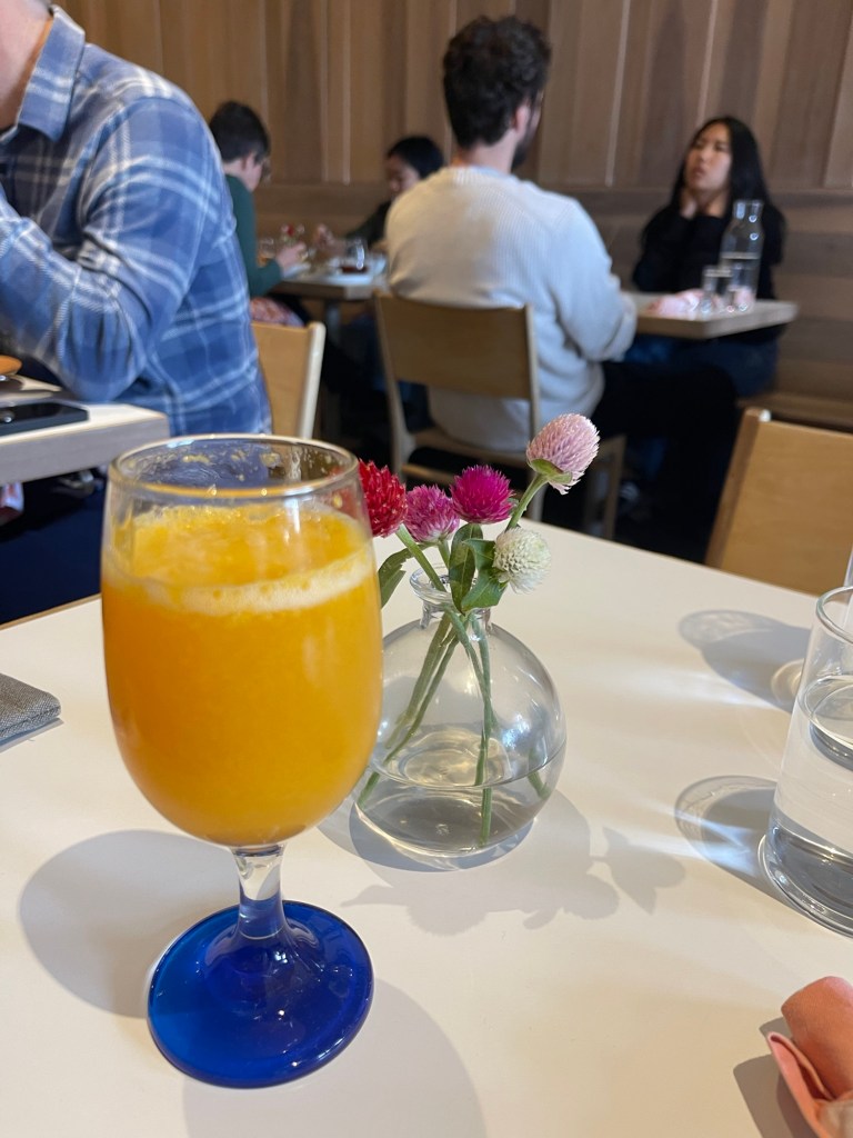 It’s all about sipping mimosas made with freshly squeezed market orange juice while people watching and eaves dropping on conversations from the table next to you where a female chats about how her last boyfriend had time blindness and was proverbially 1.5 hrs late for dinner.