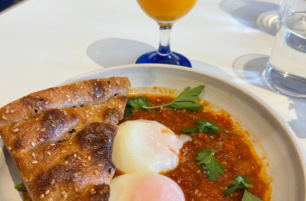 It’s all about shakshuka: gooey jammy eggs swimming in a pool of tomato stew, and Mediterranean spices.