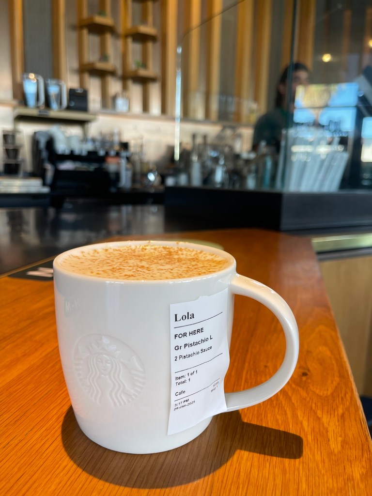 It was frothy, creamy and decadent with brown sugar sprinkled on top with just the right amount of espresso coffee entangled with hints of pistachio notes.