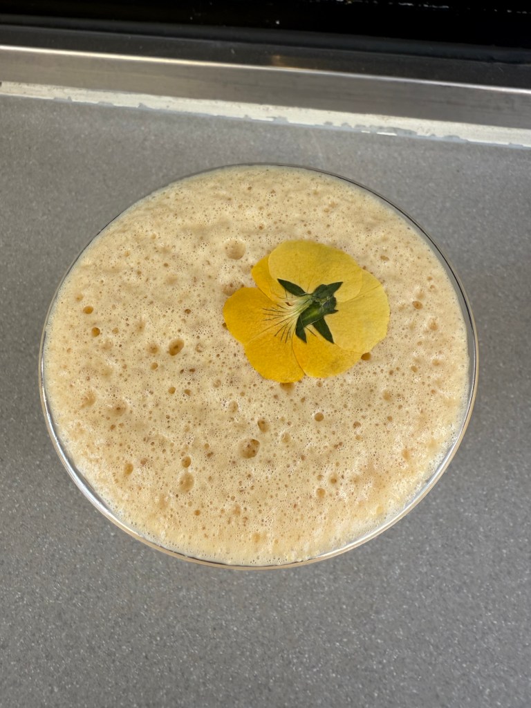 I think what makes this summer time latte extra special is the edible flowers placed on top which makes me smile. Everytime I order a “Golden Year Glow” at Creatures I get a different edible flower. Totally on brand. Love it. Cheers.