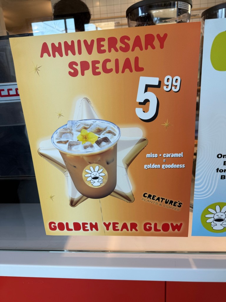 If you’re in Los Angeles and you find yourself suffering from that end of summertime sadness, the only thing that could make everything better would be the “Golden Year Glow:” miso caramel iced latte at Creatures Coffee in Eagle Rock.